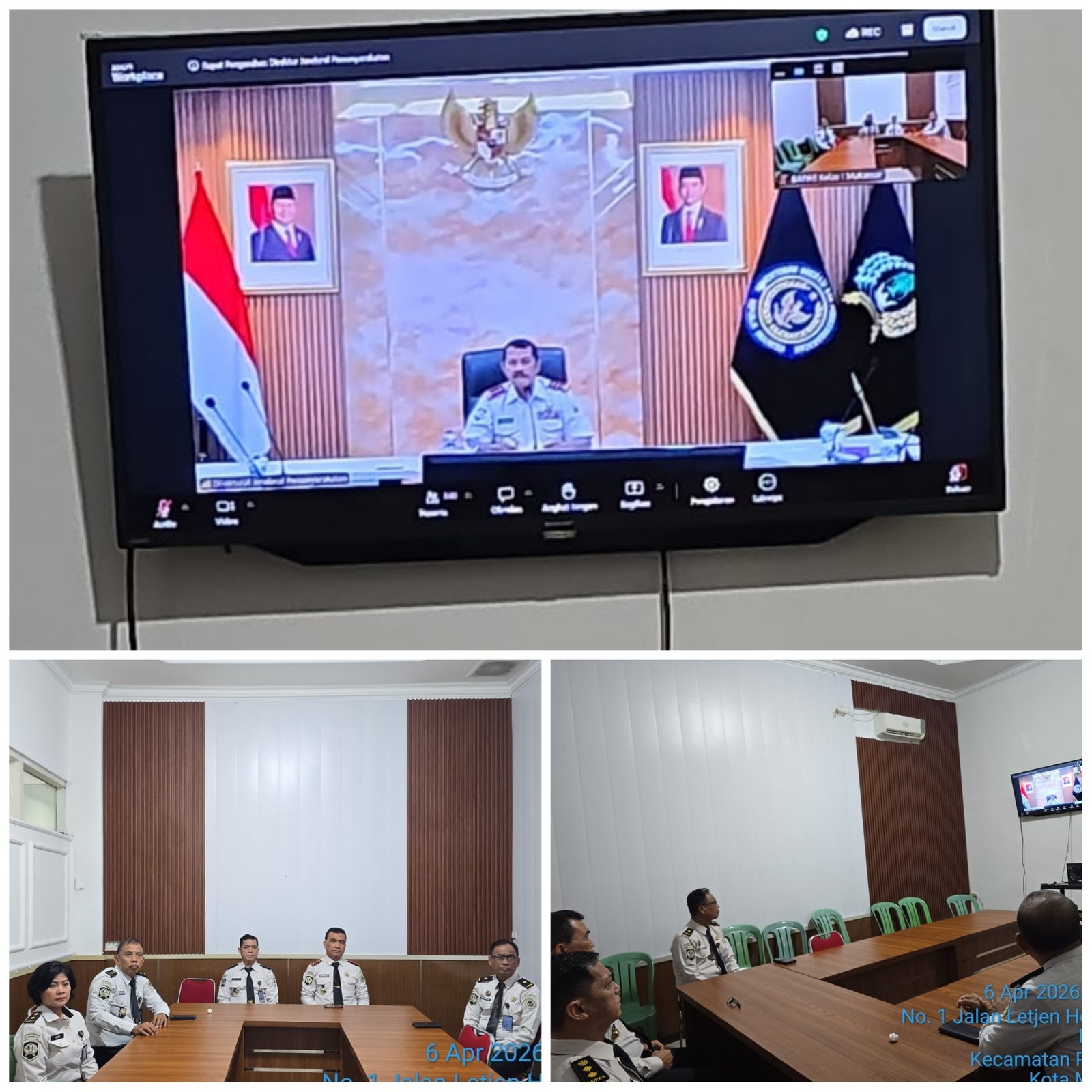Makassar — Balai Pemasyarakatan Kelas I Makassar mengikuti kegiatan pengarahan dari Direktorat Jenderal Pemasyarakatan yang dilaksanakan secara virtual, Senin (6/4). Kegiatan ini diikuti oleh Kepala Bapas Makassar bersama pejabat struktural serta jajaran JFT/JFU di ruang rapat.